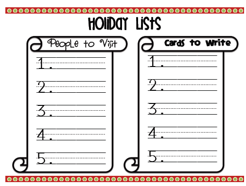 Holiday lists: 3 pages are included (with 2 lists on each page)